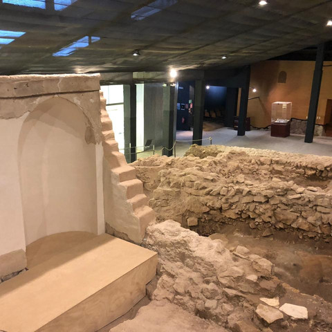 Después de algunas vueltas hicimos un alto en un hermoso hotel ubicado en la cima, para preguntar por la sinagoga. Para nuestra sorpresa, a pesar de la lluvia y las procesiones, el siguiente grupo estaba casi lleno, en su mayoría por españoles y algunos turistas de América y Europa. Jorge, nuestro guía, empezó contándonos como los lorquinos, incluido él, se habían opuesto a la idea de construir ese hotel. Era el año 2001 y estaban preocupados por la conservación del Castillo, conocido como la Fortaleza del Sol. Afortunadamente, a pesar de las críticas, el proyecto siguió y gracias al movimiento de tierra descubrieron unos restos que parecían antiguos. La obra se paralizó y los arqueólogos entraron en acción.